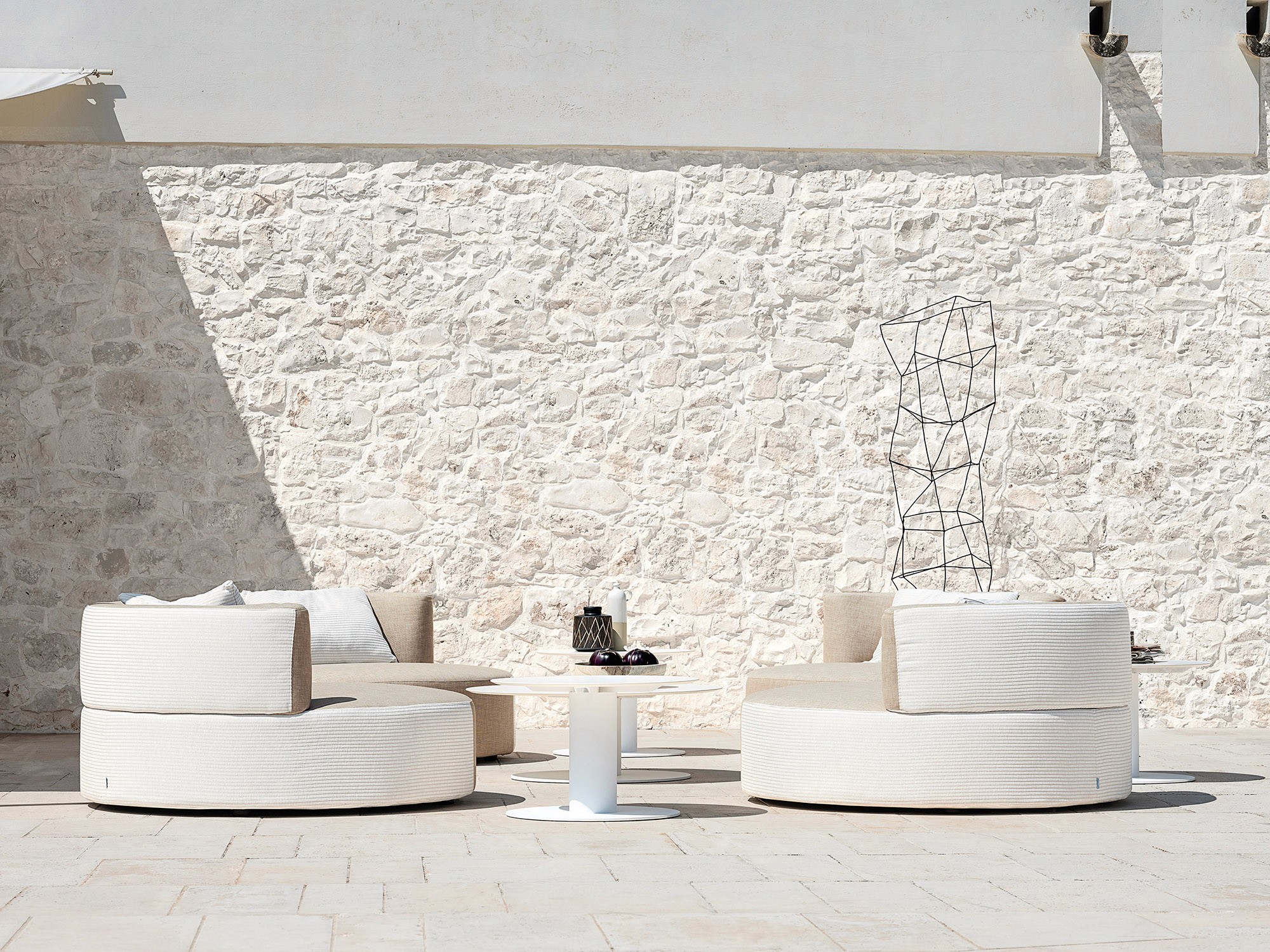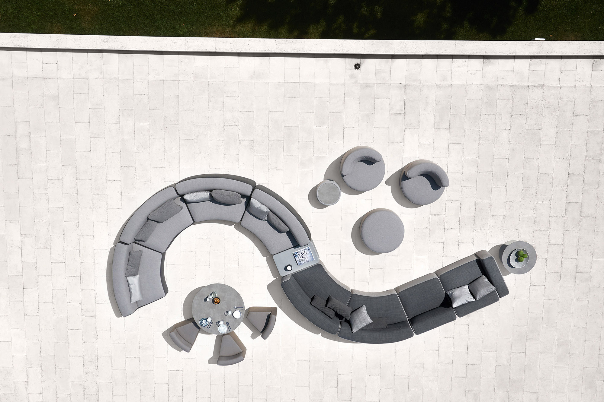 Die gepolsterten Sessel Belt bieten sich als Inseln der Entspannung an. Ihre kreisförmige Form, der große Sitz und die weiche Lehne machen sie zu einem Vorschlag gedacht für den Komfort. Die Belt Sessel sind in verschiedenen Größen mit einem Durchmesser von 90, 135 oder 200 cm und mit ein- oder zweifarbigen Stoffbezug erhältlich und schaffen elegante Zusammenstellungen, die zur Geselligkeit einladen. Perfekt für Hotels, Geschäften, Loungebars, aber auch auf der Terrasse oder im Garten des Hauses.