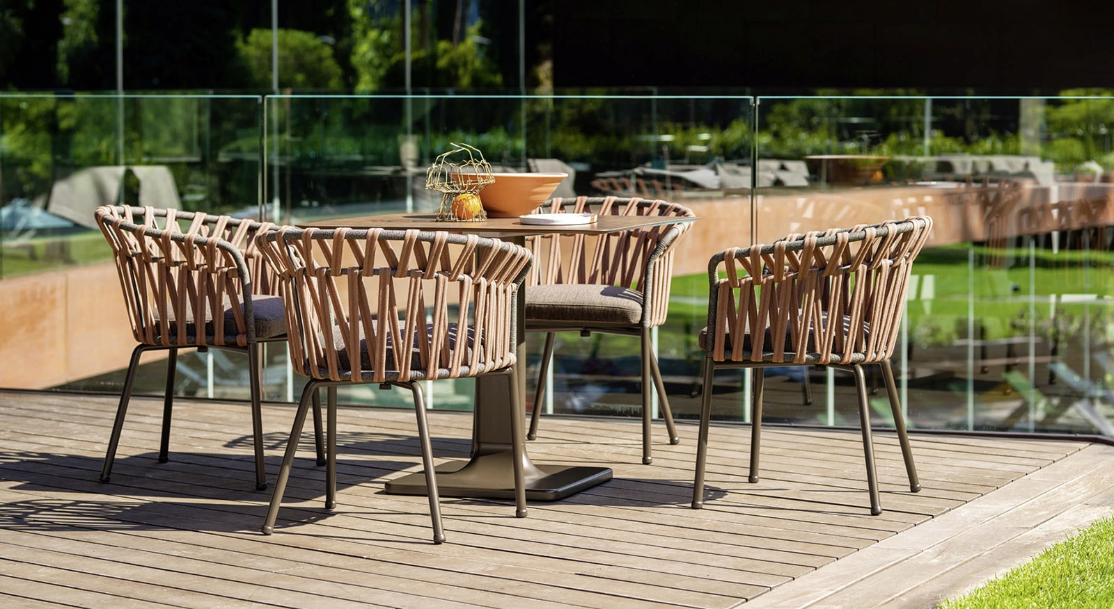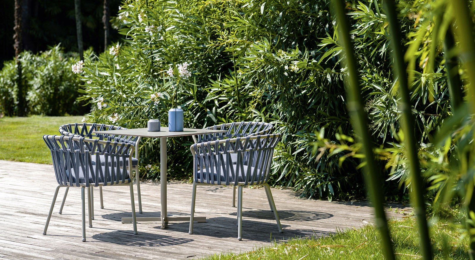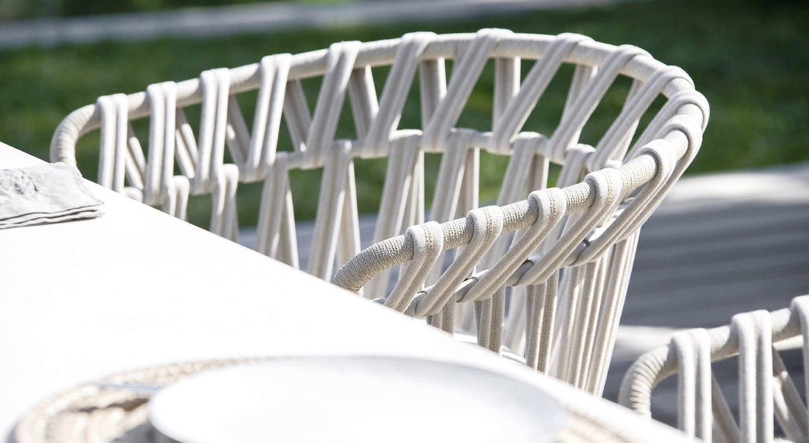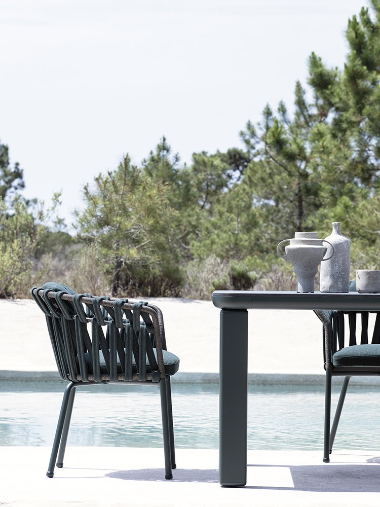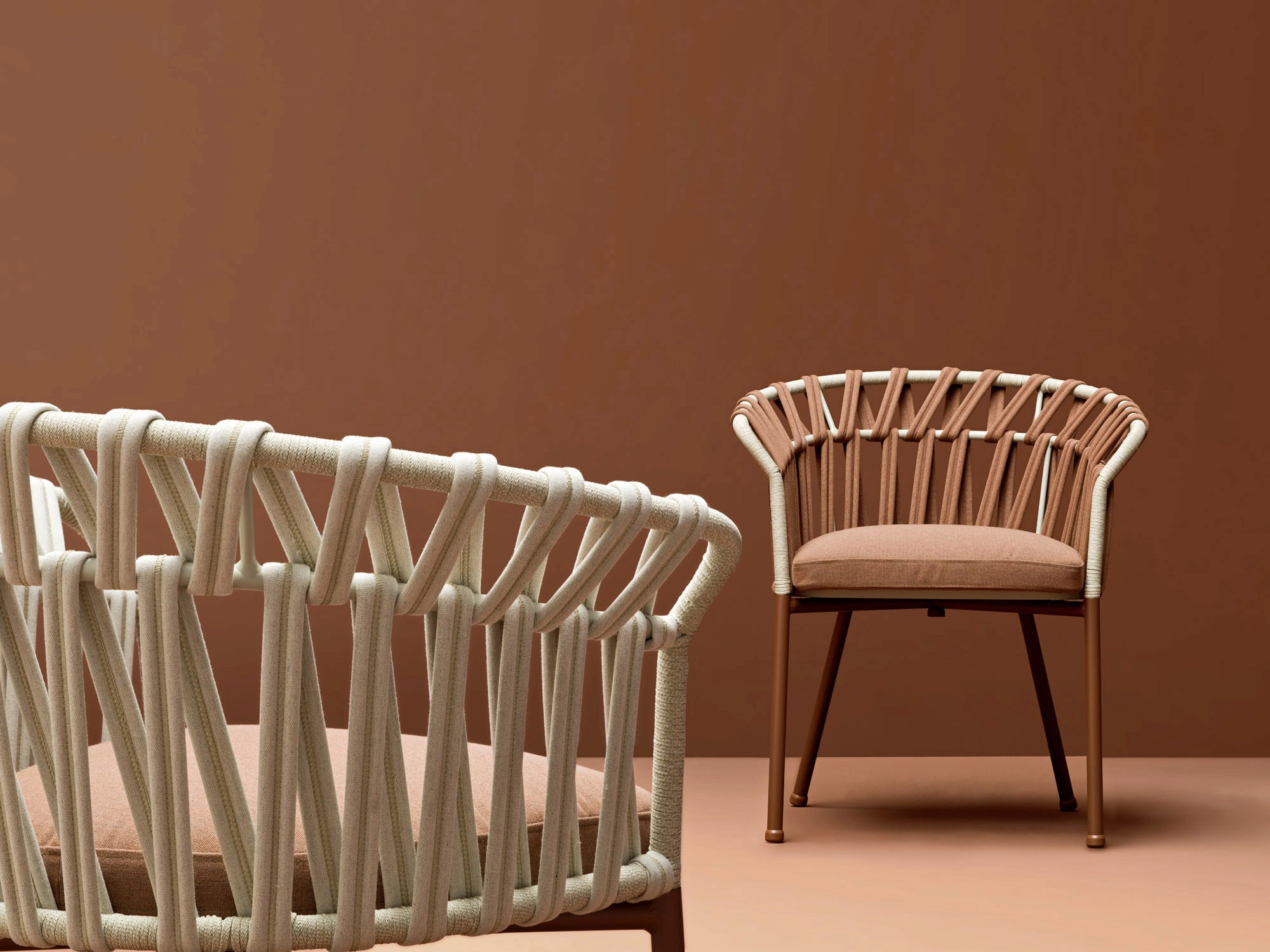 Inspiriert von der Krone einer Blume hat der Emma Cross-Sessel ein umhüllendes Design, das begrüßt und entspannt. Das Band aus Acrylgewebe überlagert das Seilgeflecht, das die Aluminiumstruktur des Korbs bedeckt und die Oberfläche der Rückenlehne mit diagonalen Linien zeichnet. Ein Doppelgeflecht, das zu einem charakteristischen Motiv dieses eleganten Outdoor-Sessels wird. Die chromatische Auswahl der Oberflächen von Emma Cross erweckt einen frischen und stilvollen Vorschlag, der sowohl für Wohn- als auch für Hotelräume geeignet ist.