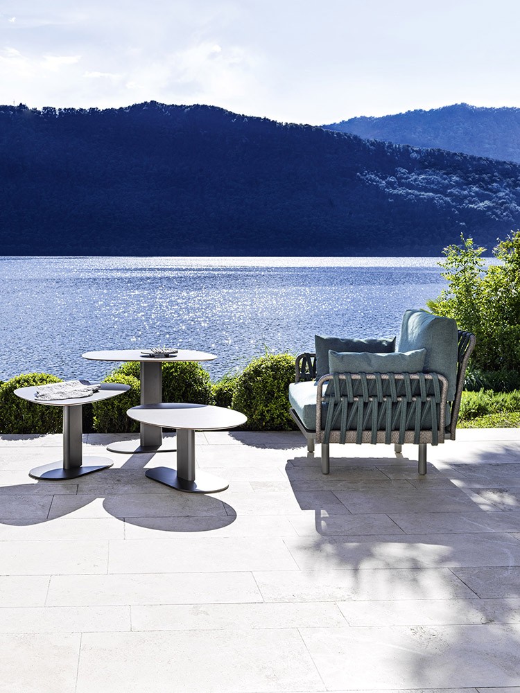 Behaglich weich umhüllend, wie eine sanfte Umarmung. Der neue Sessel Emma Cross, ein Ergänzungselement, welches die Formen des modularen Sofas der gleichnamigen Kollektion aufgreift, ist der ideale Begleiter für einen angenehmen Nachmittag unter freiem Himmel. Die geräumige und bequeme Sitzfläche ruht auf einem Gestell aus pulverbeschichtetem Aluminium, mit dem Arm- und Rückenlehnen mit dem klassischen Band aus Acrylgewebe verflochten sind.