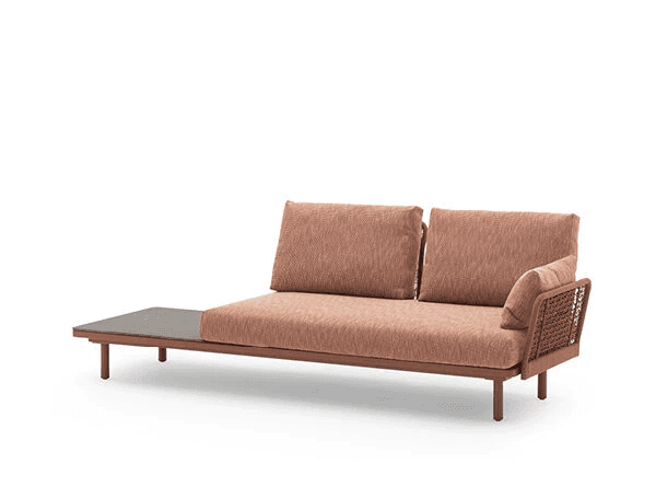 Wenn Entspannung und praktische Zweckmäßigkeit aufeinandertreffen. Die neue Dormeuse Emma ist eine einzige Einladung, gemeinsam angenehme und erholsame Momente unter freien Himmel zu verbringen. Die neue Version der Dormeuse Emma ist mit einem Gestell aus pulverbeschichtetem Aluminium oder Iroko-Holz erhältlich und wird durch einen praktischen Coffee Table vervollständigt. Dieser dient gleichzeitig als praktische Ablage für all das, was Sie für Ihren gemütlichen Relax-Nachmittag im Freien benötigen. Die Dormeuse ist in zwei verschiedenen Versionen und mit einem Sitzkissen mit Dryfeel®-Polsterung und abnehmbarem Bezug erhältlich.