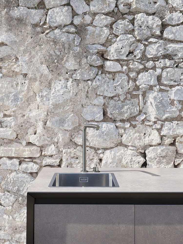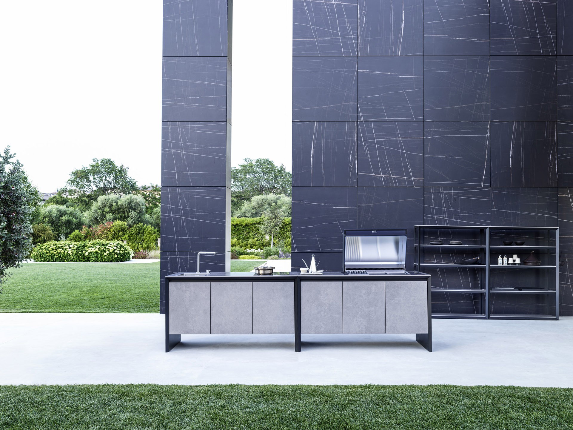 Ein Tag komplett draußen? Jetzt ist es möglich. Dank Outdoor Cooking, der ersten Outdoor-Küche von Varaschin. Elegant fügt sich unser Outdoor Cooking perfekt in jeden Outdoor-Kontext ein und bereichert alle Räume, egal ob Wohn- oder Gemeinschaftsräume. Dank einer Reihe von Module beliebig modular anbaubar, ist Outdoor Cooking das perfekte Ergebnis der weiterentwickelten Stilsprache der Architekten Pio und Tito Toso. Mit einer extrem starker Struktur, kombiniert mit geringem Gewicht, besteht das System aus Platten und Türen aus Keramikplatten, die mit einem exklusiven und patentierten Phobos®-Verfahren an das Trägermaterial befestigt werden.